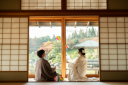 正座でお互いを見つめ合ってのお写真!正座のご希望カットは多くいただきます!色々な場面で活躍できるお写真ですね!