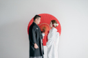 ドライフラワーのセットでは、ブラウン系の衣装がピッタリ!パパも衣装を合わせて撮影するとより素敵です!