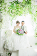 グリーンとは対照的に、白い建物での撮影。陽の光がお二人を祝福してるかのようです!