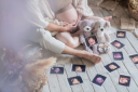 たくさんのドライフラワーの中で優しいマタニティフォトを
