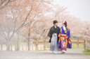 ややお澄まし風の一枚。橋と桜とおふたりがマッチしてますね!
