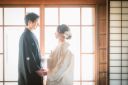 お仕度を整え、花田苑から撮影スタートです!和装の色味が背景にあっていてとてもすてきです♪