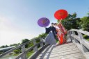 スタジオでは新しくなったおしゃれな背景で写真をとってもらい、自分たちだと思えないほどの仕上りでびっくりしました。ロケーションでは、暑い中、私たちのことを気づかってくださり、楽しく撮影ができました。ずっと着ていたかったです。本当に楽しい撮影となりました。ありがとうございました。