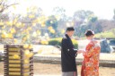 蝋梅(黄色い梅が)綺麗に咲いてましたのでこちらでパチリ☆ちょっと照れちゃうポーズですが、ラブラブ感が伝わってきていいですね!