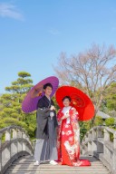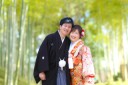 まずは入ってすぐのところにある竹林から!まだ少し緊張気味ですが爽やかに撮れましたね。見つめ合いのショットがすごくお上手なお2人でした!