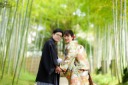 花田苑といえば竹林!ご新婦様のお衣装の裾を下ろして、フォーマルなお写真をパシャリ!