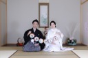 シンプルに無地の背景と金屏風のブースからスタート!慣れない衣装で大変ですが、頑張っていきましょうね~