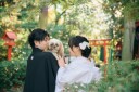 黄色く染まる秋の中、白無垢の新婦がひときわ美しく輝きます