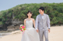 寄り添うお二人。咲き乱れるハイビスカスが祝福していますね。ハイビスカスにガジュマルに青い海青い空。沖縄を体現する1枚です。