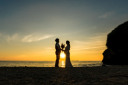 どこまでも続く水平線に臨むアーティスティックな一枚。波の音もふたりを祝福。