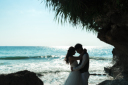 サロンから徒歩3分ほどでビーチにご到着!水面には雲の合間から出た太陽が反射し、きらきらと輝きおふたりの笑顔を照らします♡