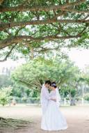 ちょっと写真を撮るだけと言ってサプライズで結婚10周年のご夫婦がウエディングドレスとタキシードをまとって登場し、急に挙式が始まりみんなはびっくり、でも笑顔満開。