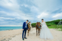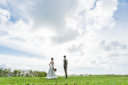 雲が少し多いけれど海の色はすごく綺麗なこの日!おふたりのテンションも上がります♪