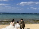沖縄の爽やかな風とブルーの海と空をバックに見つめ合うおふたり。カメラマンはお互い大切に思われるお姿を、見逃さずしっかり撮っていますよ~!