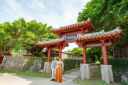 お客様からリクエストが多い琉球の街並みのロケーションではこの様な沖縄らしいお写真が残せます。新婚旅行の旅の記念にもなりますよね。