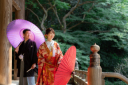 鎌倉の市街地近くにありながら、閑静な佇まい。こちらでも晩秋の美しい境内を眺めながらのご撮影をしました。ご新婦様は白無垢にお召し変え、はんなりとした雰囲気に♡