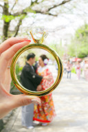 池にお二人のお姿が映ってなんとも素敵な一枚となりました!遠くからのショットもとても良いですね!