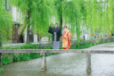 雨ごい、、、かな!?和傘をお渡しするとお二人でこんなポーズを。楽しい前撮りです。