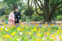 オレンジや赤のお花柄が引き立ちます。春の日差しにやわらかく白く浮き立つ新婦様です(#^.^#)