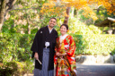 綺麗に紅葉したもみじを使って可愛らしい一枚を♡お互いの笑顔が本当に素敵ですね!