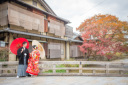 明るい祇園をバックにご新婦様のソロカット☆白無垢がより明るく見えますね☆