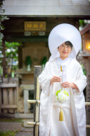 狐のお面で和の雰囲気がましまし。腕組みの新郎様が本当に決まっていますね!
