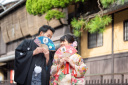 手をつないで早朝の祇園をお散歩します。暖かくお日様もさして気分はマックスですね。