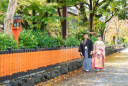 紅葉と鳥居の鮮やかな赤で着物の青がより鮮やかに見えますね!