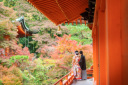 手をつないで仲良く祇園をお散歩します。カサカサと落ち葉を踏む音が響きます。