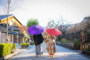 毘沙門堂はまだまだ紅葉が鮮やかです。和傘を持って手を取り合って♡