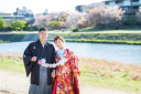 八坂の塔をバックに新郎さまソロショット撮影です。かっこいいですね。