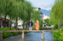祇園の町屋を背景に撮影です!紅葉や緑もいいですが町並みも祇園も魅力です。