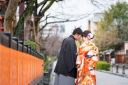 緑もいっぱいの祇園です!手を取り合ってにっこり!いい笑顔です。
