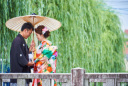柳がとても長く続く東山白川です!一本橋の上で撮影です。