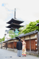祇園といえばこの朱色の玉垣ですよね。しっとりした雰囲気のお二人です。