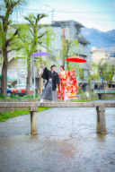 お二人ご持参のガーランドで撮影です!ヘアセットもとても綺麗に仕上がっていますね。