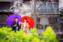 とにかく笑顔いっぱいのお二人です!和傘もおしゃれですよ!