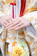 新郎さまの手を引いてもらっている手元を…指先がとても綺麗です。