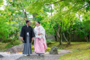 衣装2点プランで2つの撮影地に行かれたお二人。今度は八坂の塔にやってきました。新郎様もなんと綺麗な白紋服にお着替えされていますね。