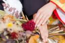 婚約指輪と結婚指輪の重ね付けでとても華やかです。ネイルも色打掛にぴったりです。