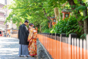 白無垢にお着替えして毘沙門堂にやってきました!緑がとても綺麗ですね。