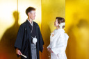 金屏風前での和室撮影はもうお二人ともすっかりリラックス。特に最初はがちがちだった新郎様にとっても素敵な笑顔がでるようになりました。和室撮影グッズも一杯あります。