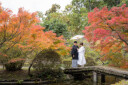 光の中の素敵なプロポーズ写真です。新婦様お持込のオレンジ色のクラッチブーケが効いていますね。