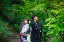 祇園の南白川通は町内の皆様がキチンとお世話をする植え込みが綺麗に整っています。四季折々のお花がお二人を楽しませてくれます。