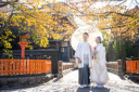 お二人にご要望の多い正座ポーズのショットはやはりお寺が映えますね。綺麗に並んだ柱が趣があります。お礼状や年賀状に使うお二人が多いです。