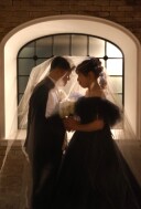 ベールに包まれて見つめ合うおふたりの姿は、ライティングも合わさってとてもお洒落な仕上がりです。