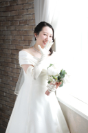 ボディラインが美しく、ラインの出るマーメイドラインを選ばれました。インポートのドレスらしい背中の特徴的なデザインがお写真にも際立ちます!