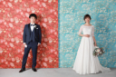 モノクロの壁紙でドレスとタキシードの色味をより引き立ててくれます。