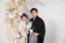 金屏風の背景に白無垢・紋服を合わせて、おしゃれな雰囲気に仕上がってます。