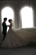 ご新婦様の膝に寝っころがってじゃれあい写真を撮りました。型物写真はもちろん、自由なポーズで撮影もできることは嬉しいポイントです。
